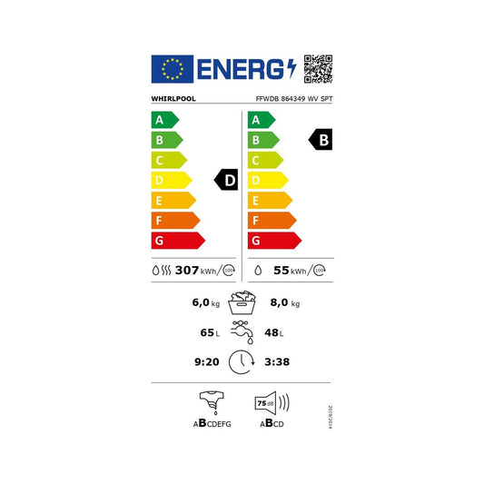 Waschmaschine / Trockner Whirlpool Corporation FFWDB864349WVSP 1400 rpm
