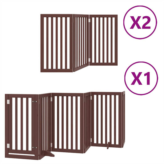 8-Tlg. Hundetor Mit Tür Faltbar 640 Cm Pappelholz