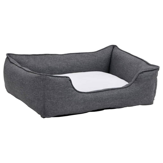Hundebett Grau-Weiß 65X50X20 Cm Fleece Leinenoptik