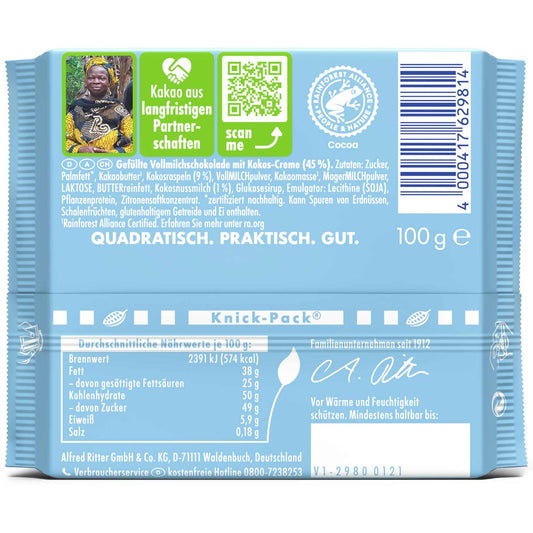 Ritter Sport Kokos 100g Alpen-Vollmilch-Schokolade mit Kokos-Milch-Creme