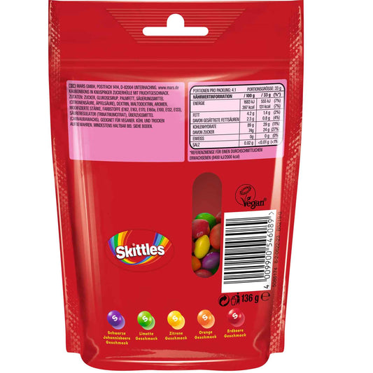 Skittles Fruits 136g Kaudragees mit knuspriger Zuckerhülle und Fruchtsaftkonzentrat