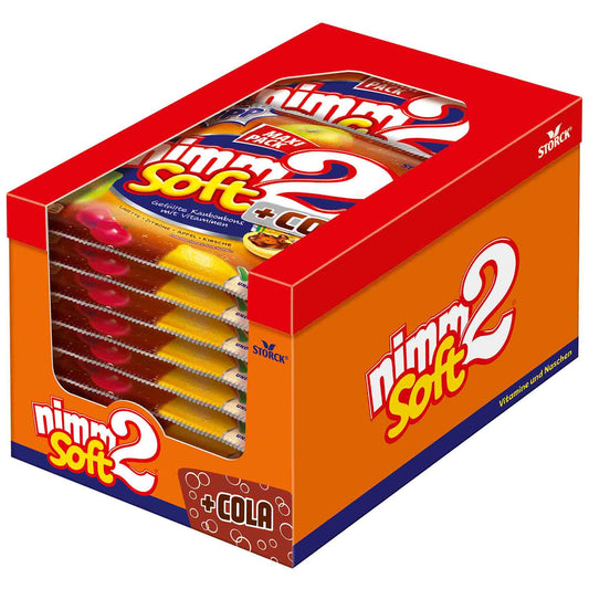 nimm2 Soft + Cola 195g Gefüllte Fruchtkaubonbons mit Vitaminen und Colageschmack MHD 05/2025